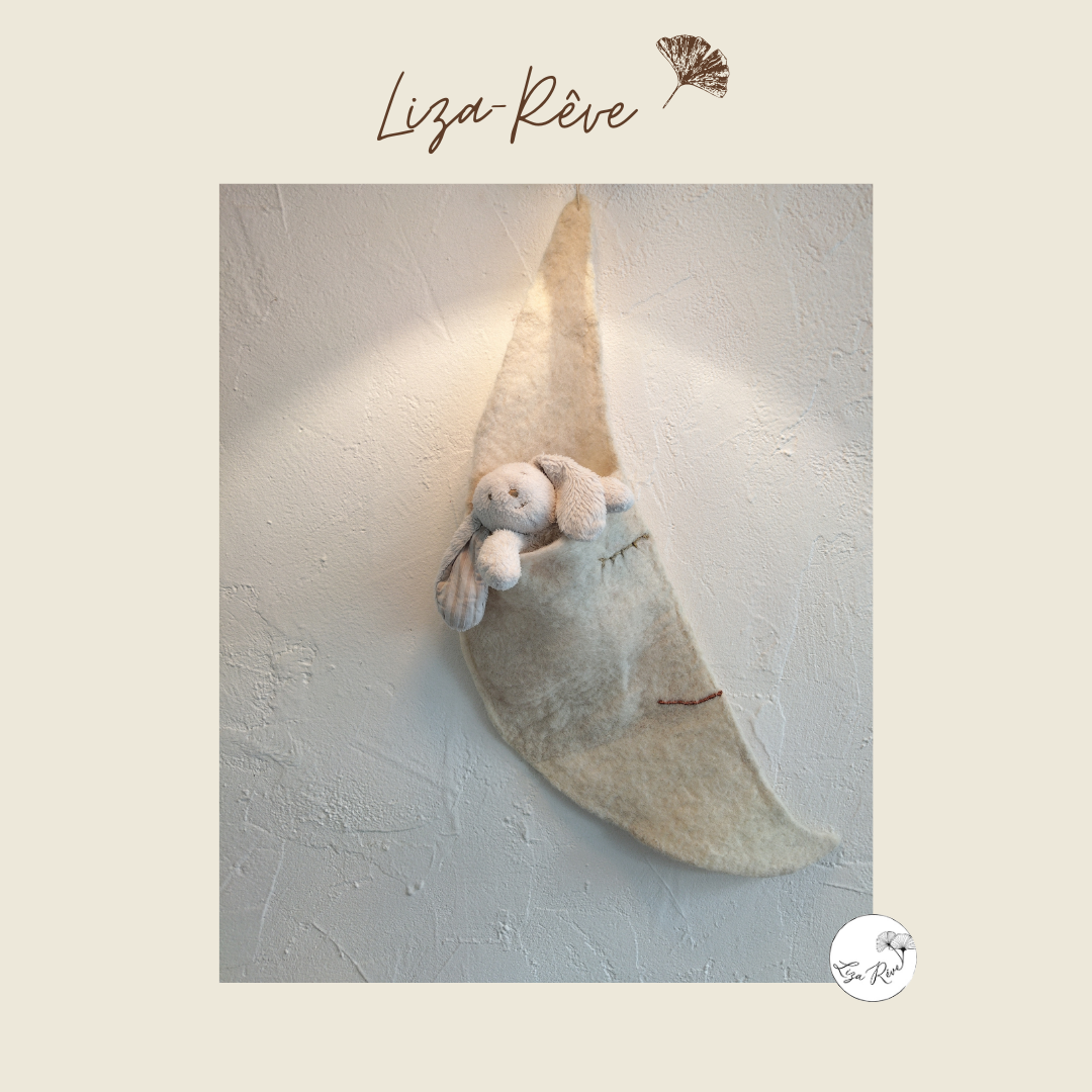 Cette création artisanale unique est accompagnée d’une pochette intégrée parfaite pour ranger le doudou préférés de votre enfant. Alliant esthétique, douceur et praticité, elle apportera une ambiance chaleureuse et apaisante à la chambre de votre petit 💖