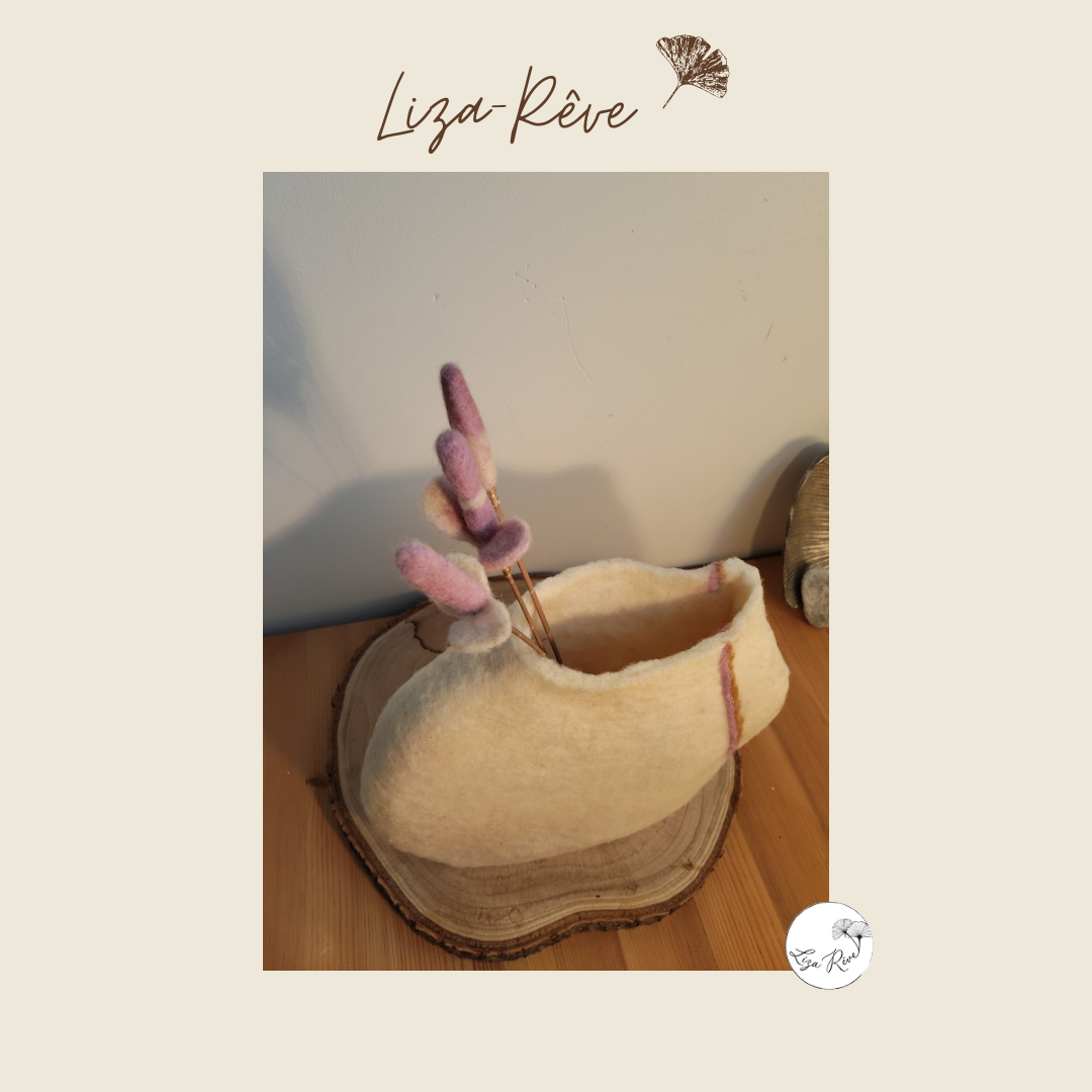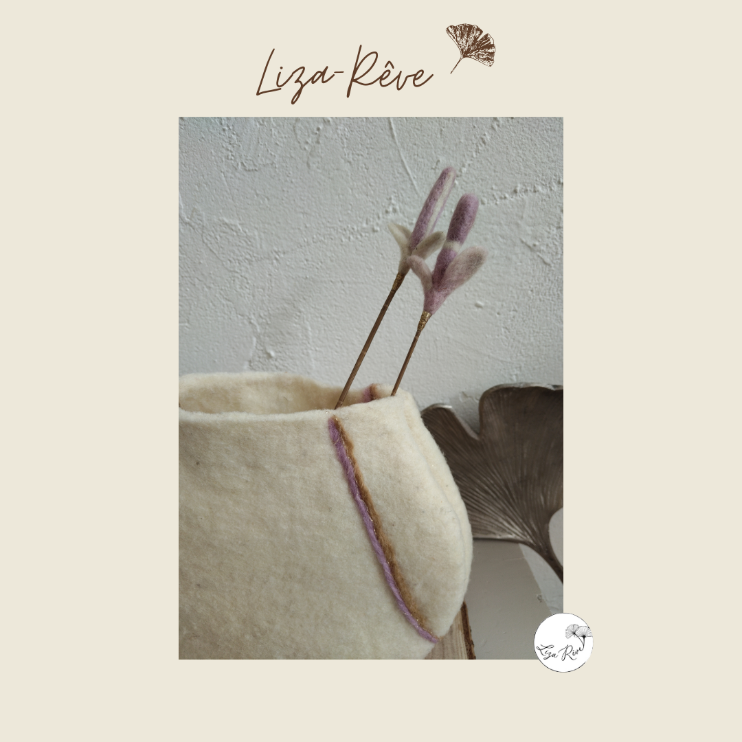 🌸 Contenu : 1 vase + 3 fleurs feutrées